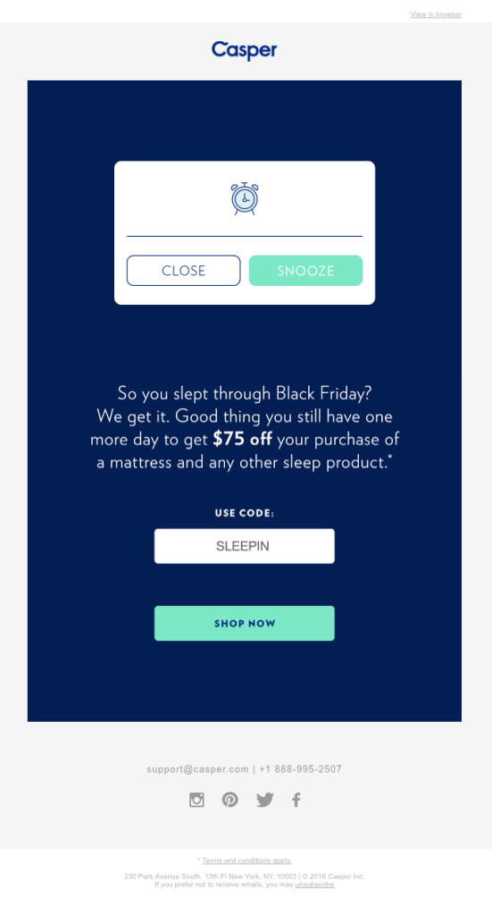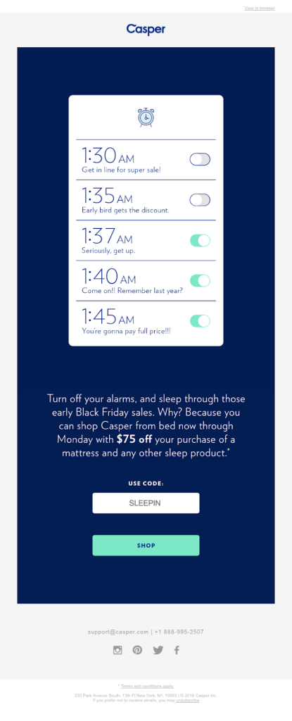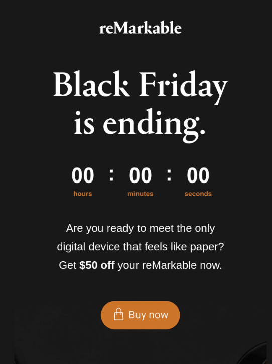 - Clean design helps the message cut through the visual noise of Black Friday.