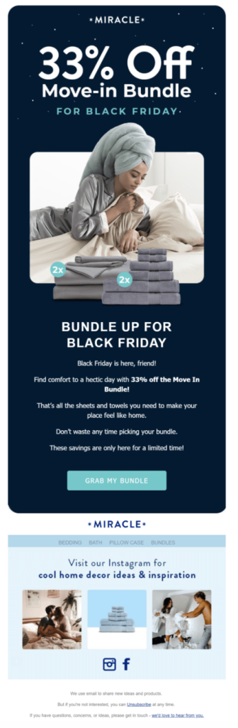 Miracle Brand used a clever Black Friday email with the subject line “👆 Better than their deals 👇” to position their offer as superior to competitors.