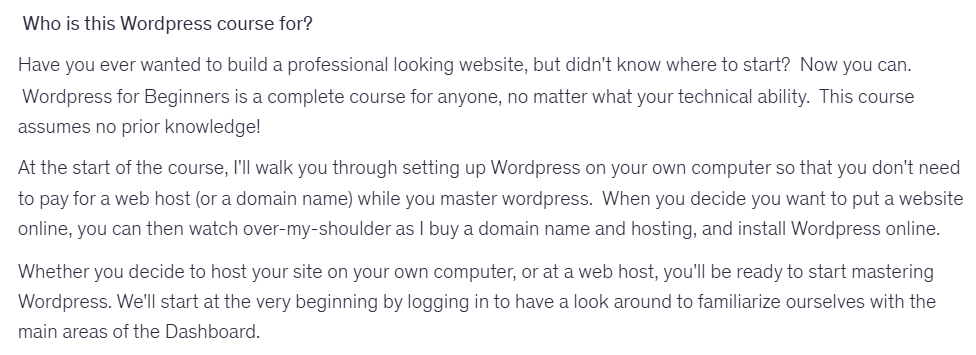 A course description is the short section of sales copy that bridges the gap between a student’s problem and your solution.