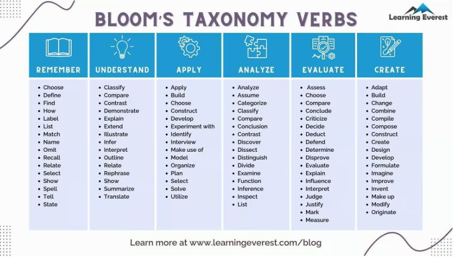 Avoid soft language like ‘learn about’ or ‘understand’, and instead focus on what they can do.