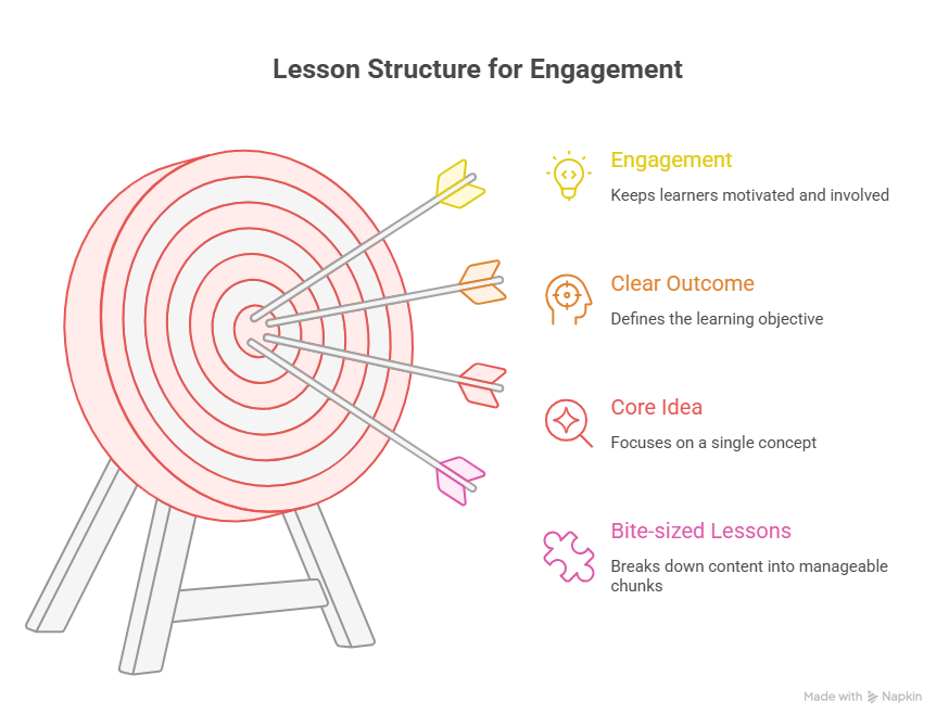 - One core idea per lesson