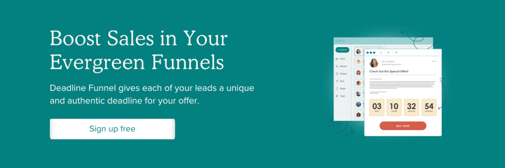 With Deadline Funnel you can add a natural, non-invasive sense of urgency to your email campaigns and landing pages. Sign up for our free trial and see the difference for yourself!