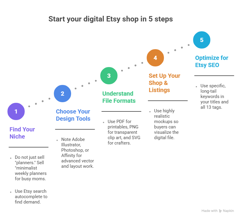 Selling digital products on Etsy is simple in theory. No inventory, no shipping, no overhead. Create a file once, upload it, and get paid over and over again.