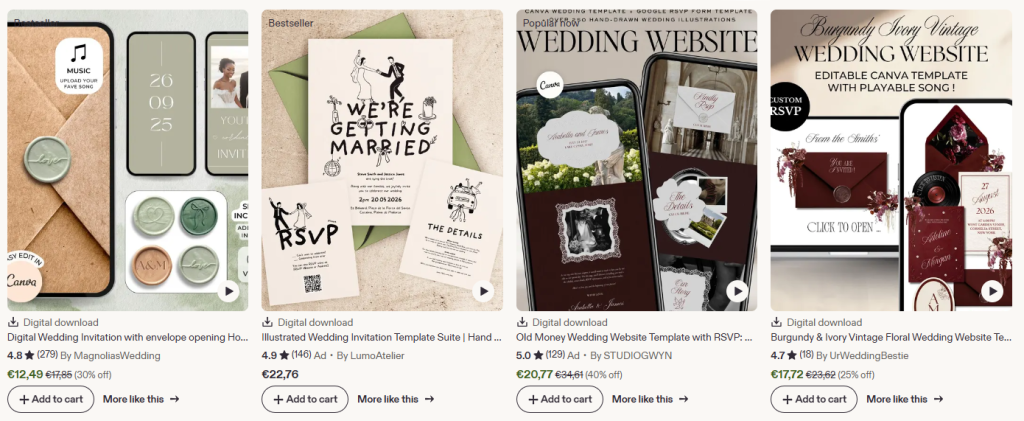 Why it works: Events have deadlines. Buyers don’t want to design from scratch, they want something they can customize quickly.