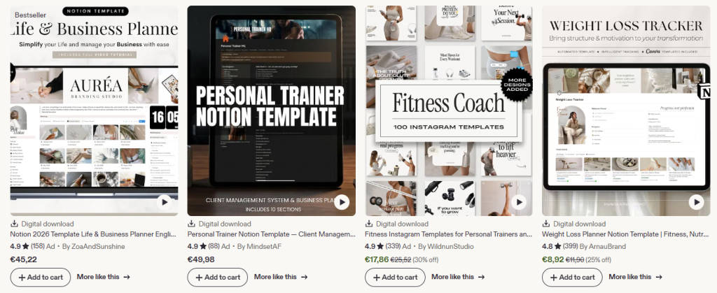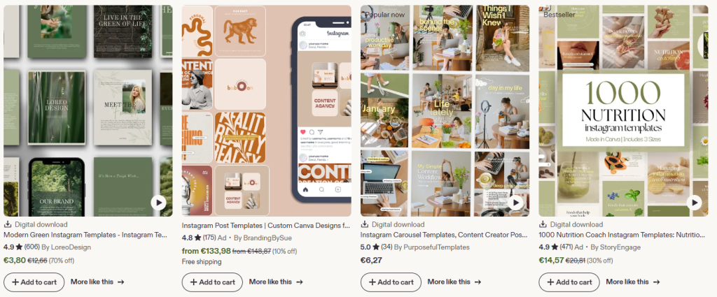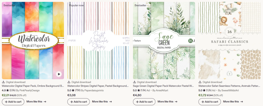 Pricing pressure is real. Most single digital downloads are priced relatively low, often in the $5-$10 range depending on the product type, which makes it hard to scale unless you’re selling at volume.