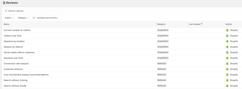 Start with what’s already built into your dashboard. Shopify’s built-in analytics give you the pulse of your store at a glance.