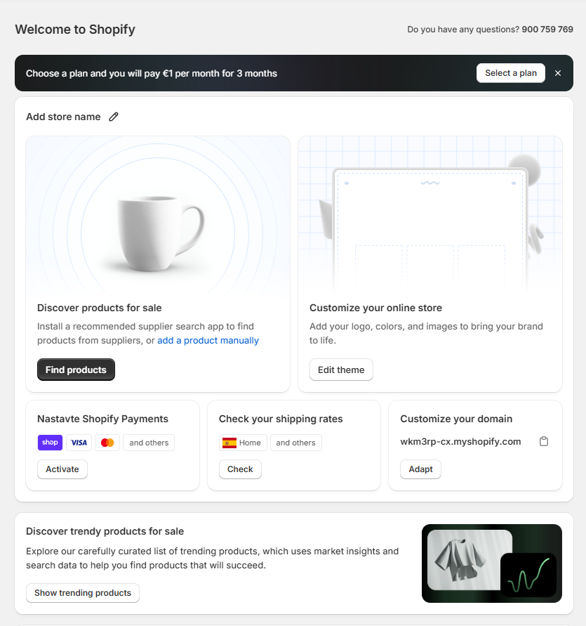 Start by creating your Shopify account. The process is simple: head to shopify.com and start a free trial. You’ll be guided through naming your store and choosing your industry.