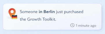 - Social proof popups show real customer activity, such as purchases, reviews, or signups, to build trust with visitors.