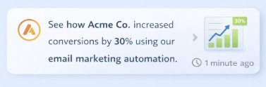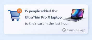 Adding small details like names, locations, or product titles makes the notification feel more realistic and relatable.