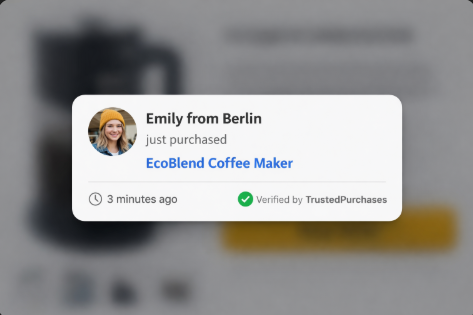 A notification such as “Maria from Austin just purchased” signals that real users have already taken the step. Perceived risk drops, which is especially important for first-time visitors who do not yet know your brand.