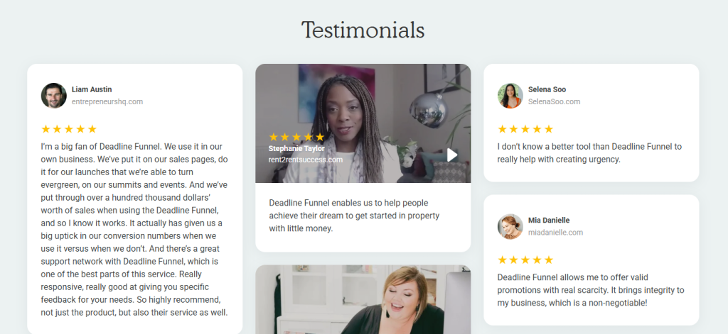 Deadline Funnel’s static testimonials