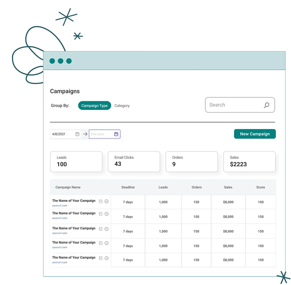 Learn the most valuable information about your campaign performance with detailed reports on open rates, clicks, conversions, and the impact of personalized deadlines.